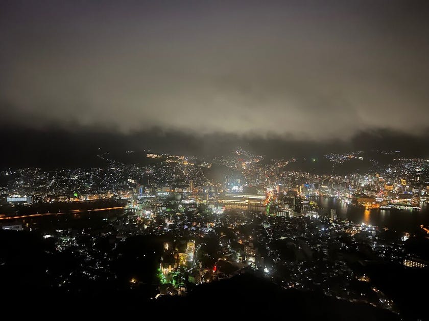 長崎の稲佐山からの写真です。当日曇りで見れるか分からず展望台についてから見えまして感動的でした。
